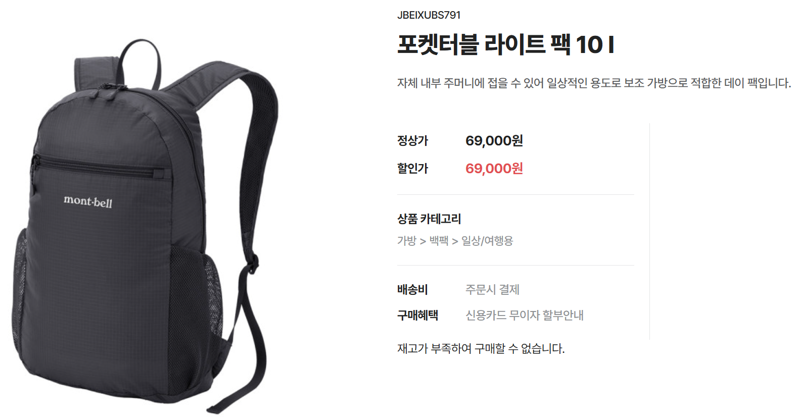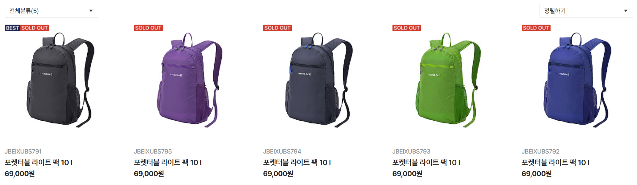 몽벨코리아 공식사이트에서는 전부 품절 상태다.