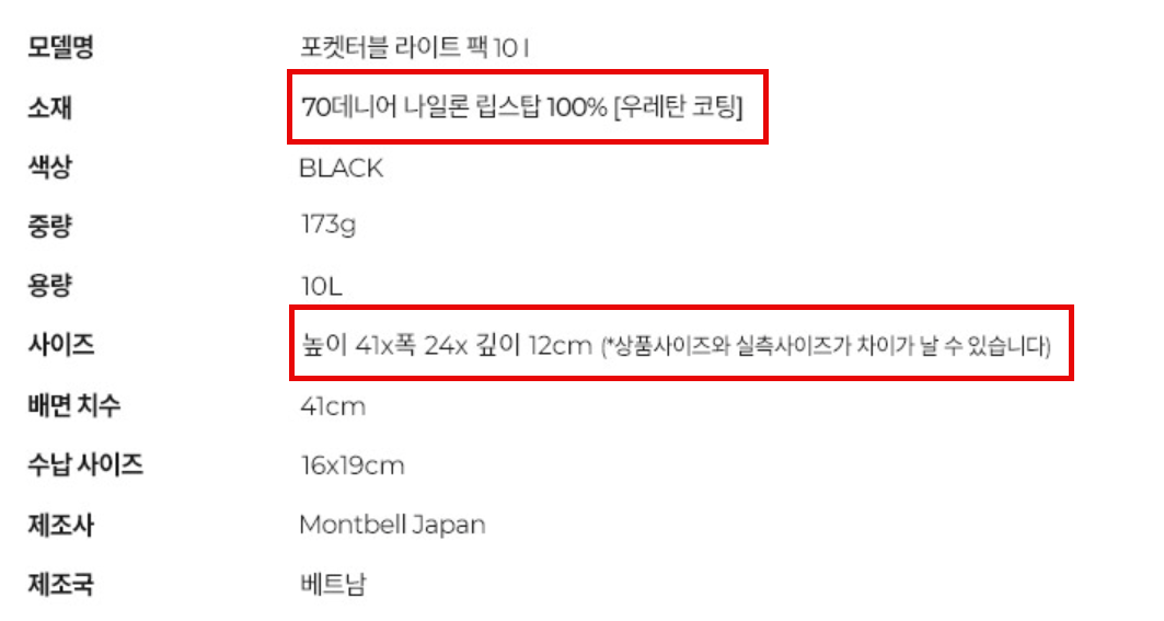 몽벨 포커터블 라이트 팩 10 L 제품 구매 결정에 참고한 블로그 리뷰 글