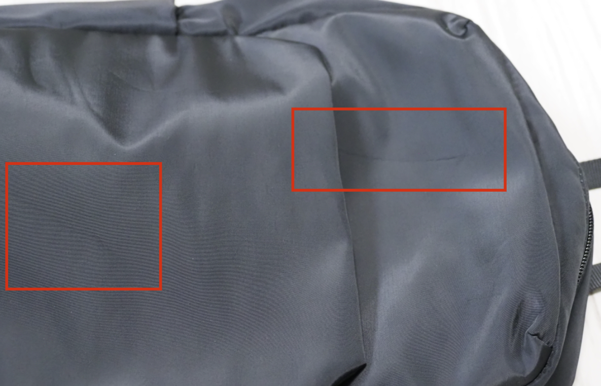 구매 당시 새제품에 줄이 가 있어 1회 교환을 했는데 새로 받은 제품도 살짝 흔적이 있었다. 이게 이 가방 소재의 특성이 것을 이 때 판단했어야 했는데....