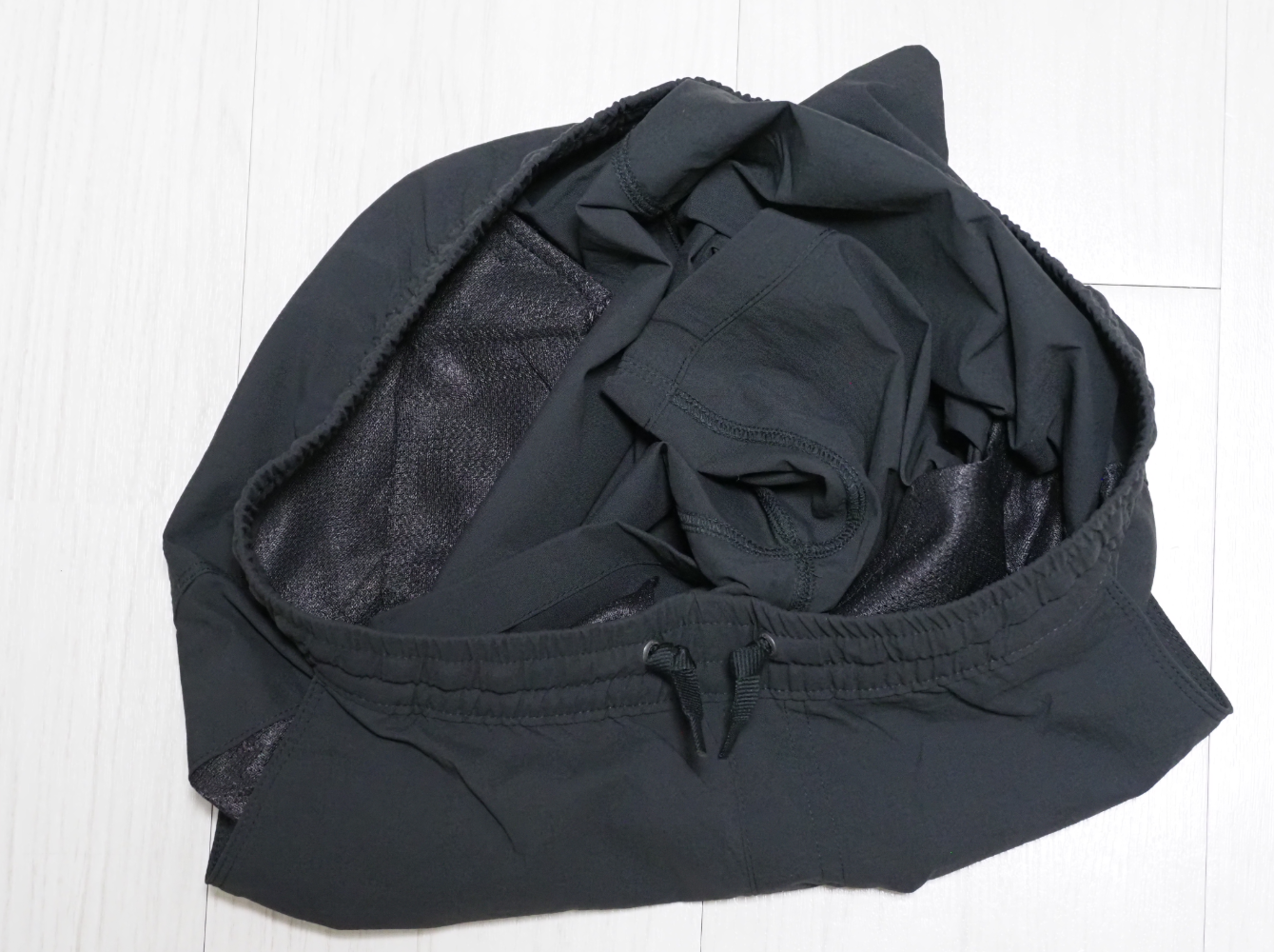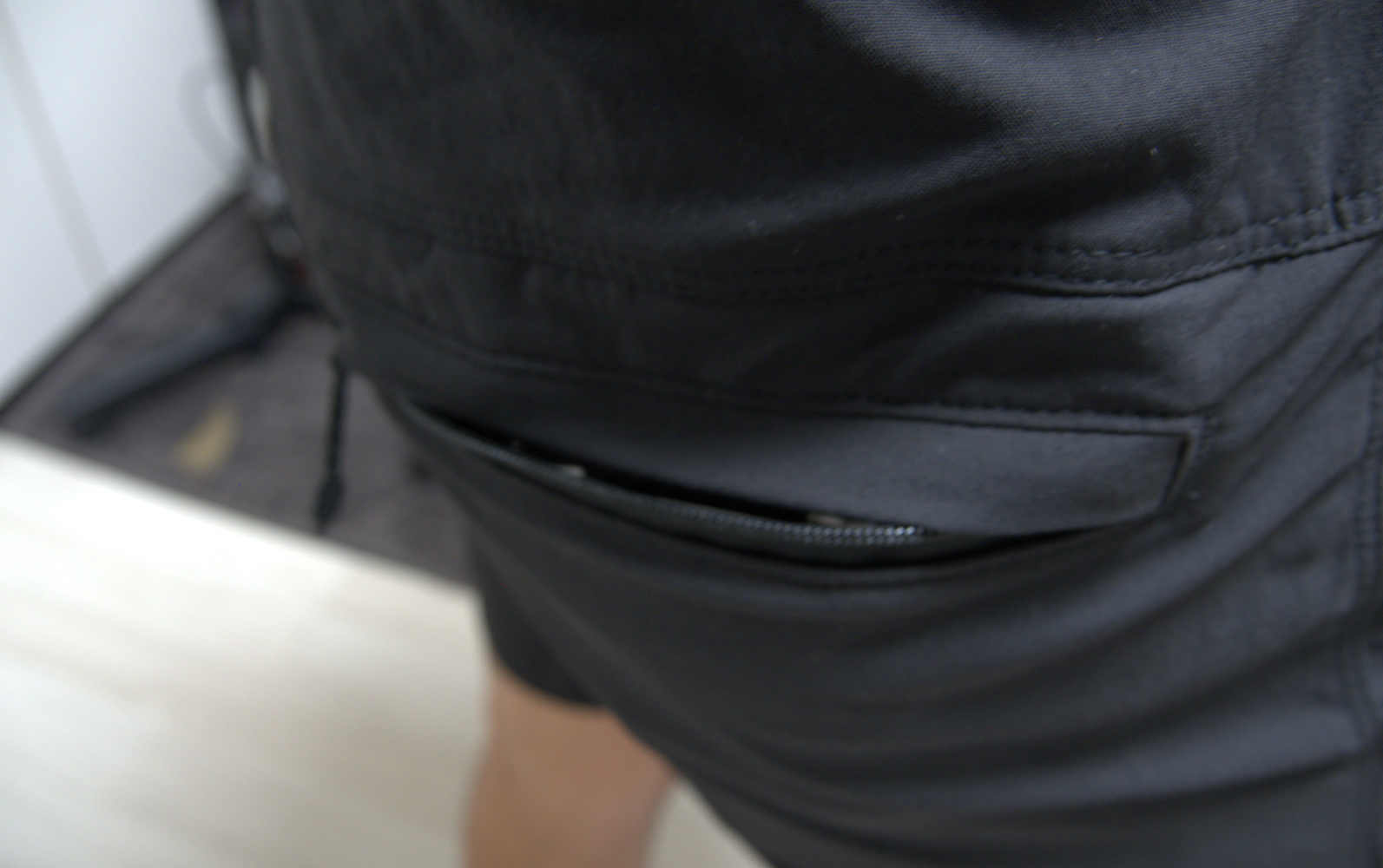 뒤 주머니는 스마트폰을 보관하기 좋다. 앞에 넣으면 처진다. 이 뒤 주머니에 바지를 돌돌말아서 패킹이 가능하다.