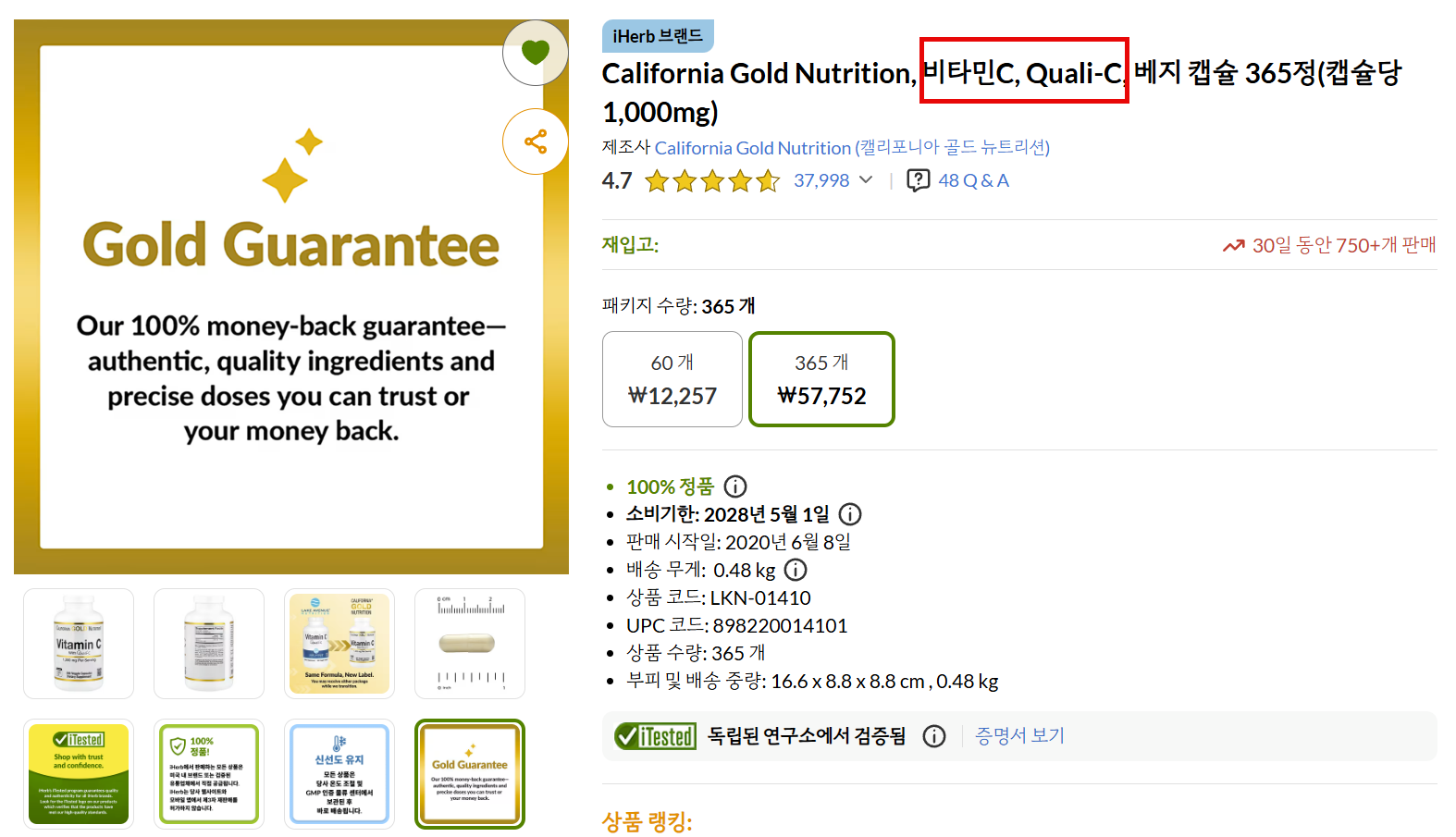 원재료의 출처가 명확한 Quali-C 등급의 비타민 C를 선택했다.
