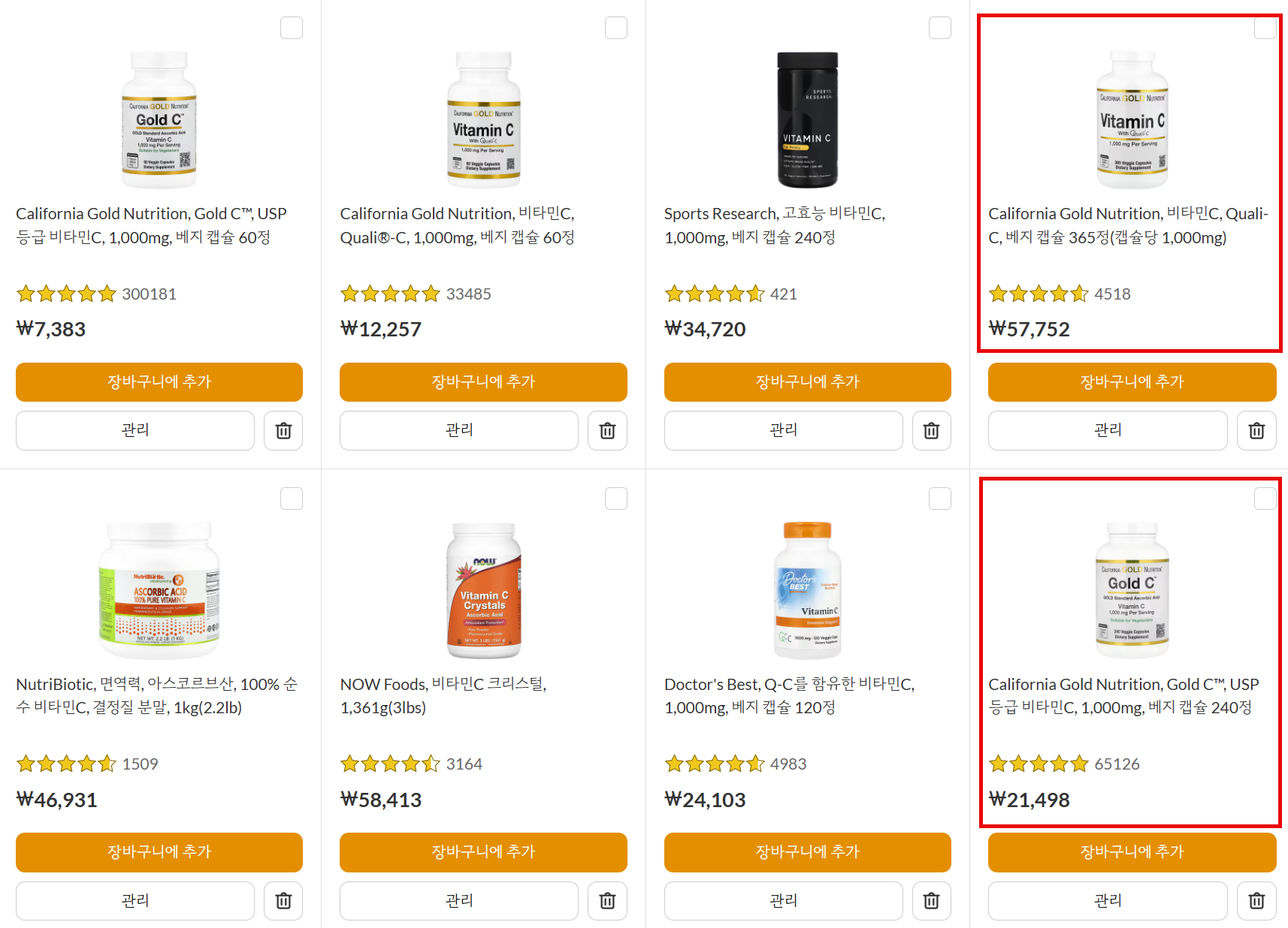 두 개의 제품이 선택 범위에 들어왔다. Quali-C, USP C 원재료로 가격 차이가 발생한다.