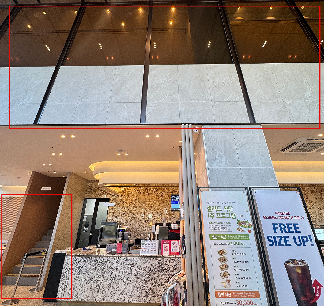 - 1층은 주문 매장 2층은 테이블만 있다. 반납대도 2층에 있음