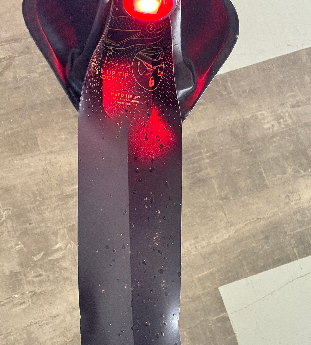 정말로 효과 좋은 머드가드가 필요하다면 프레임에 고정하는 방식의 제품을 구매해야 한다. 빗물이 고여있는 웅덩이가 많은 곳에서 경기하는 영상을 보니 이 머드가드를 한 라이더는 전혀 엉덩이와 등이 오염되지 않는 것을 확인했다.