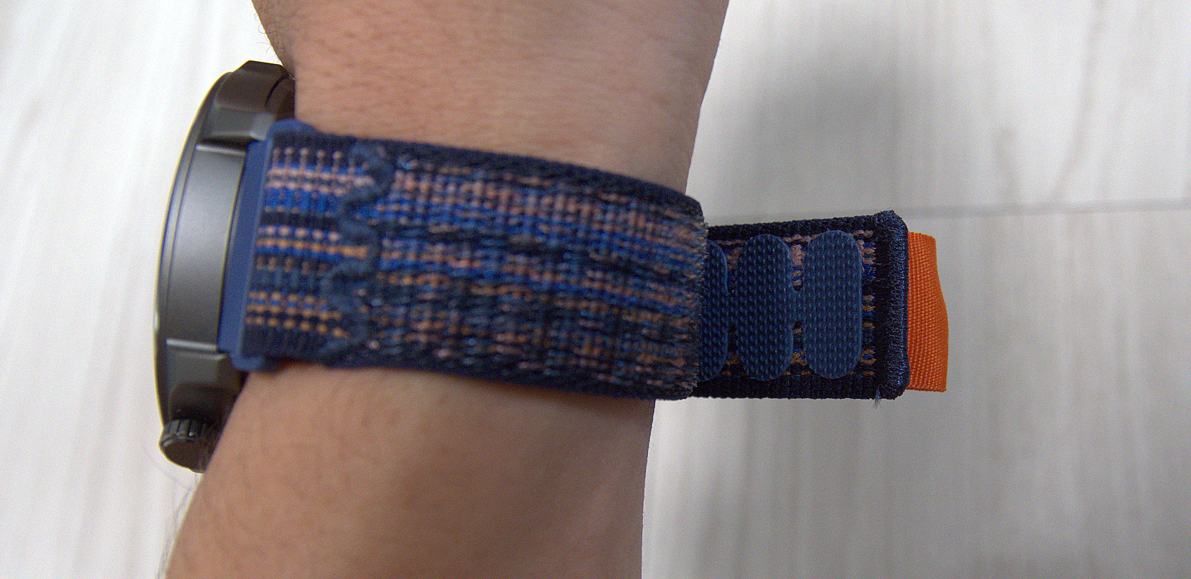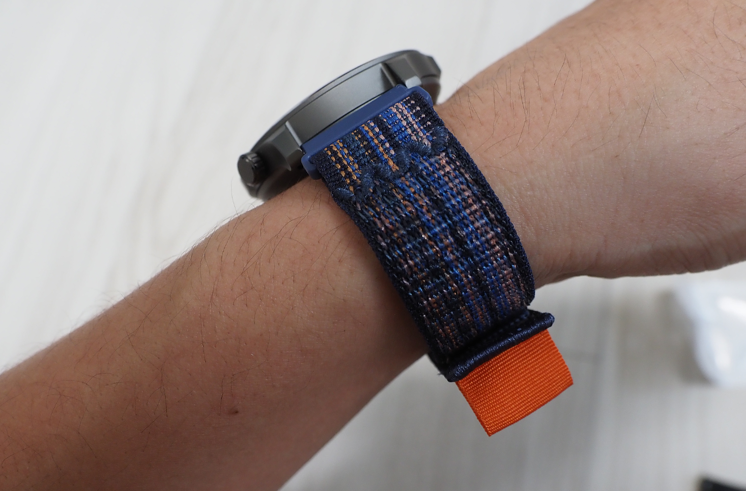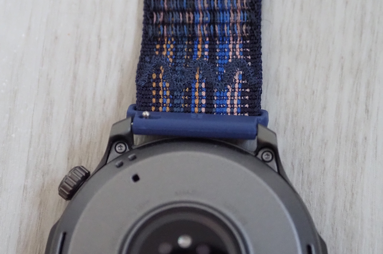 밸런스 2의 기본 시계줄은 살을 치대는 느낌이다. 오래 차고 있으면 이질감이 있고 특히 물기가 묻거나 땀이 났을 때 찝찝하고 불편하다.