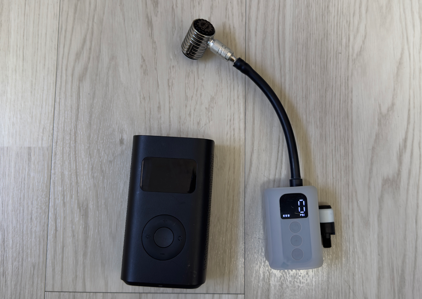 이 조합으로 공기를 주입 할 수 있었다. 샤오미전동펌프 호스 길이를 좀 더 자르고 무거운 원버튼에어척 대신 슈발베 펌프 헤드 어댑터를 끼우면 가볍게 휴대할 수 있을 것 같다.