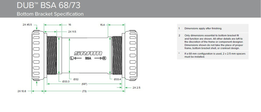 - SRAM DUB BSA 68/73 mm Bottom Bracket