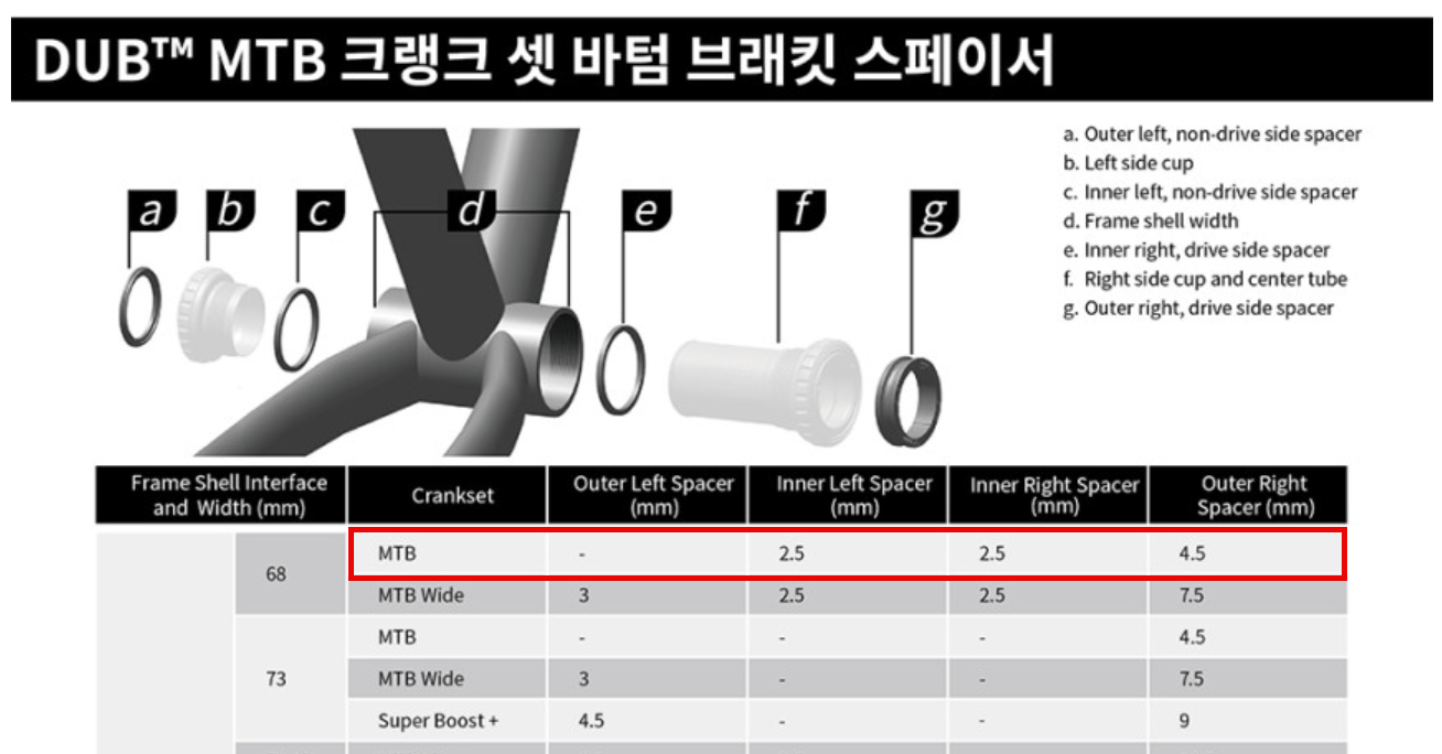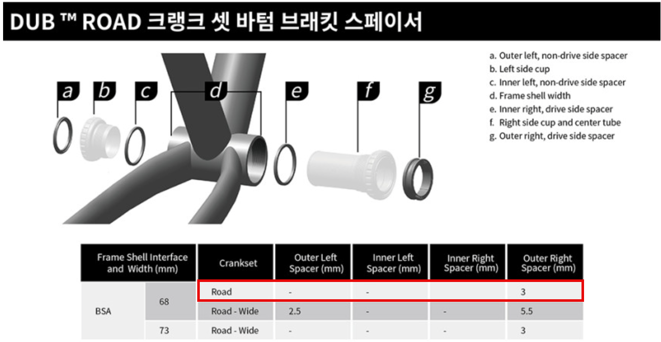 로드 및 MTB DUB 크랭크셋용이며, BSA 나사산 방식의 비비쉘에 호환된다.