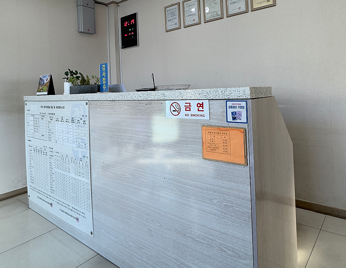 검사장 입구에 차량을 정차하고 사무실에서 접수하면 된다. 자동차등록증이 필요하다.