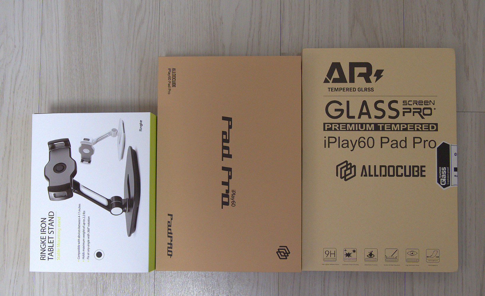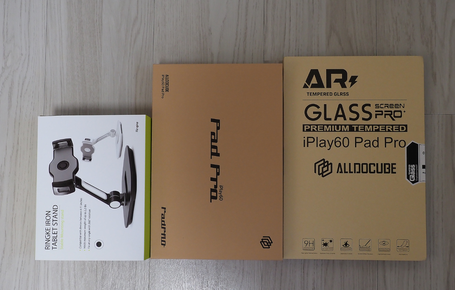 우측: 올도큐브 iPlay60 PadPro + 링케 아이언 테블릿 거치대 블랙(새로 구매한 제품)