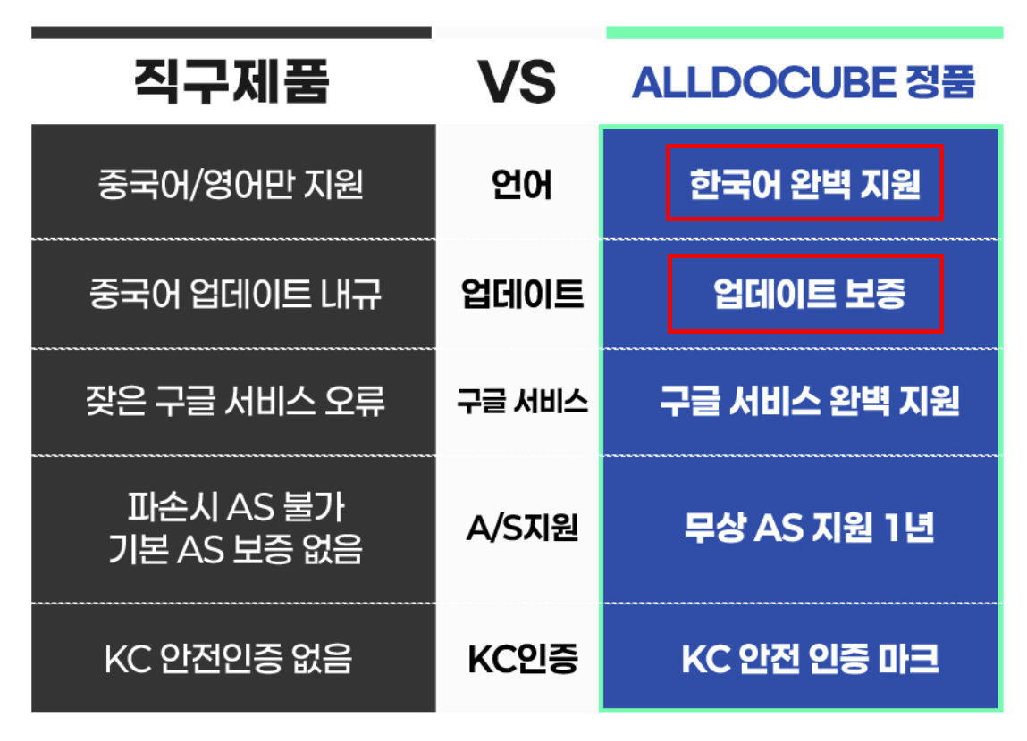 올도큐브의 장점은 한국어 지원과 안드로이드 운영체제 자체의 업데이트 지원 같다.