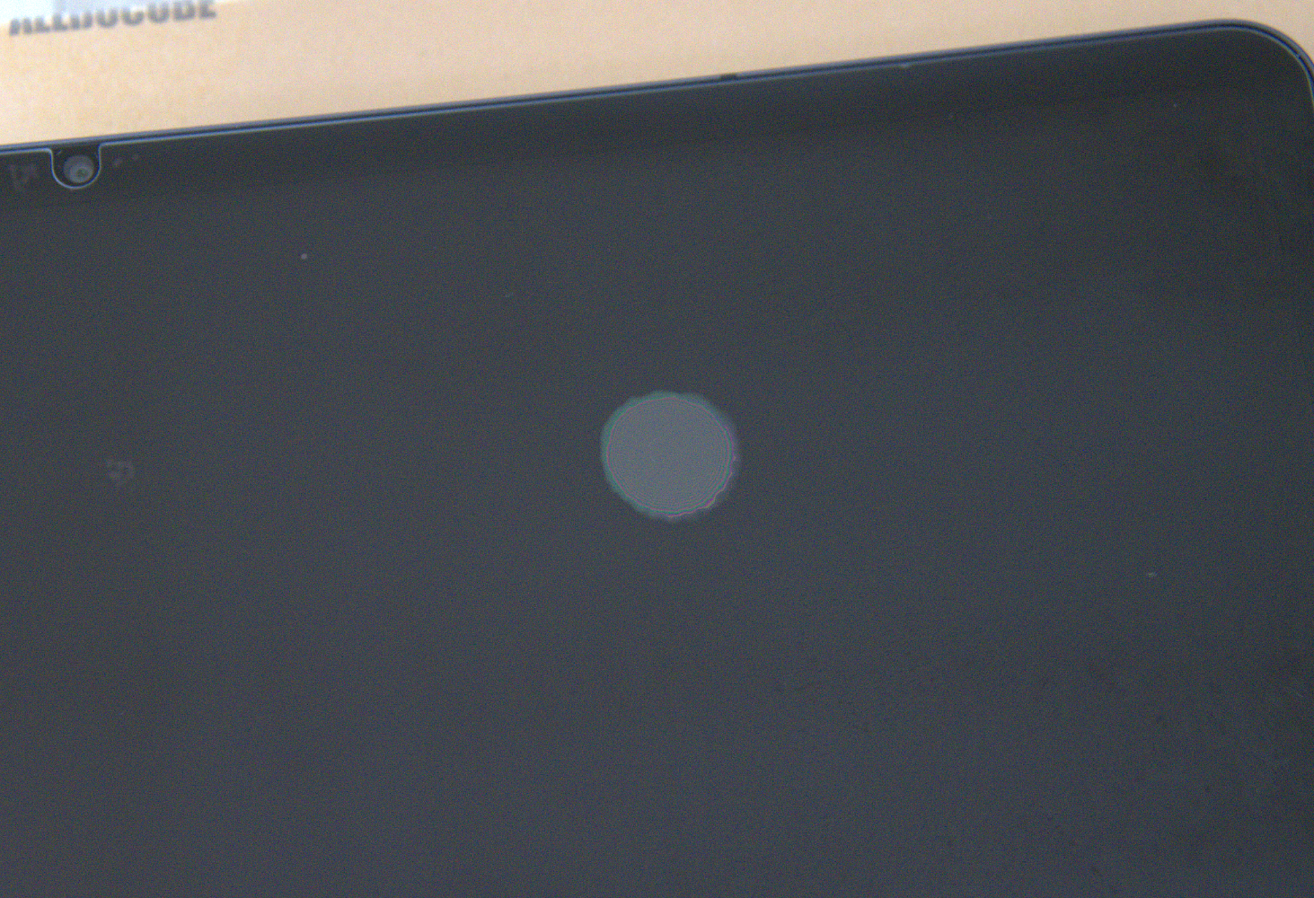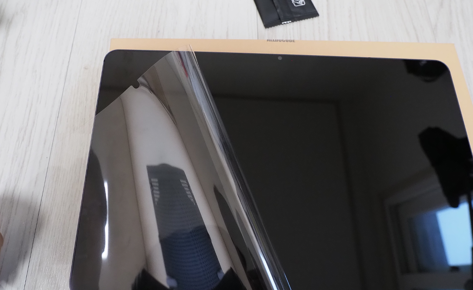 보호필름: 테블릿 자체에 보호필름이 붙어있다. 터치 시 손가락이 밀리지 않는 재질이다. 떼내고 반드시 다른 필름으로 교체 필요