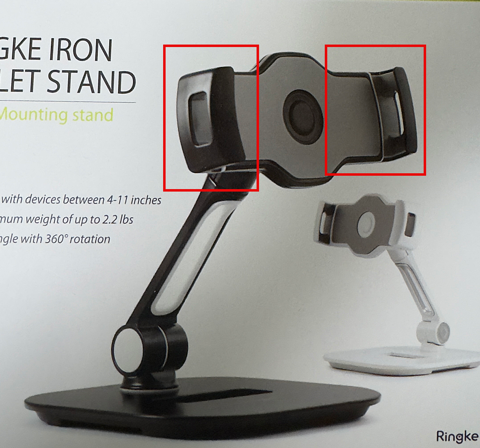 즉, 테블릿을 가로로 거치하게 될 텐데 지지하는 2개의 부분의 유격이 서로 다르다. 유격이 발생하는 부분을 아래로 향하게 하면 된다.