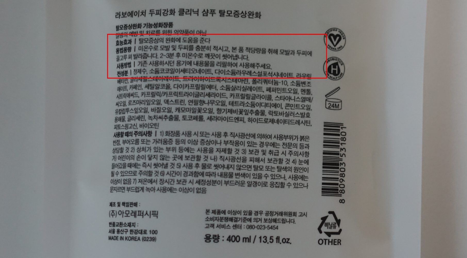 즉, 두피 청결에 중점을 둔 것을 머리를 감으면 체감할 수 있다.