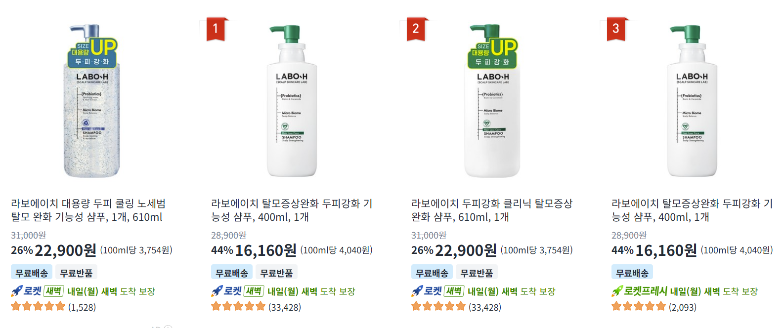 라포에이치 두피 강화 샴푸 가격대는 용량에 따라 다양하다.