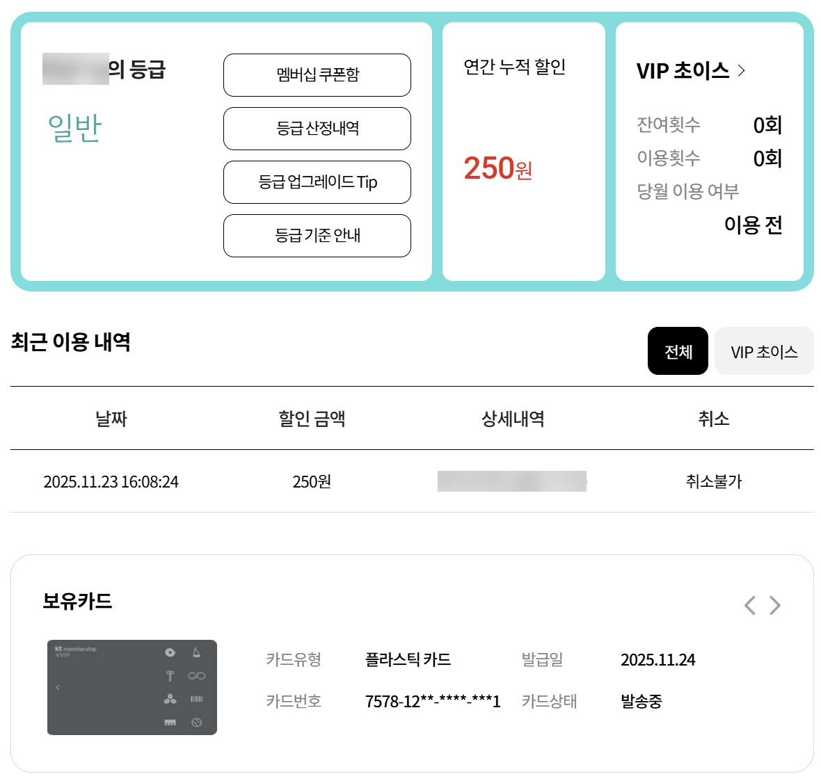 케이티 인터넷과 티비를 개통하면서 케이티 멤버십 자격이 되었다.