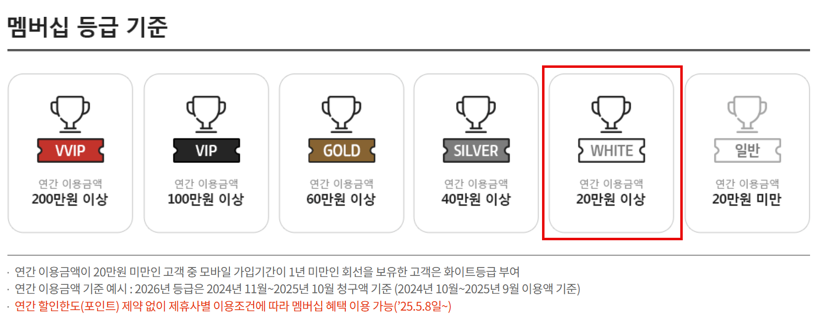 2만6천원 정도 요금을 내고 있으니 '화이트' 등급으로 고정될 것 같다.