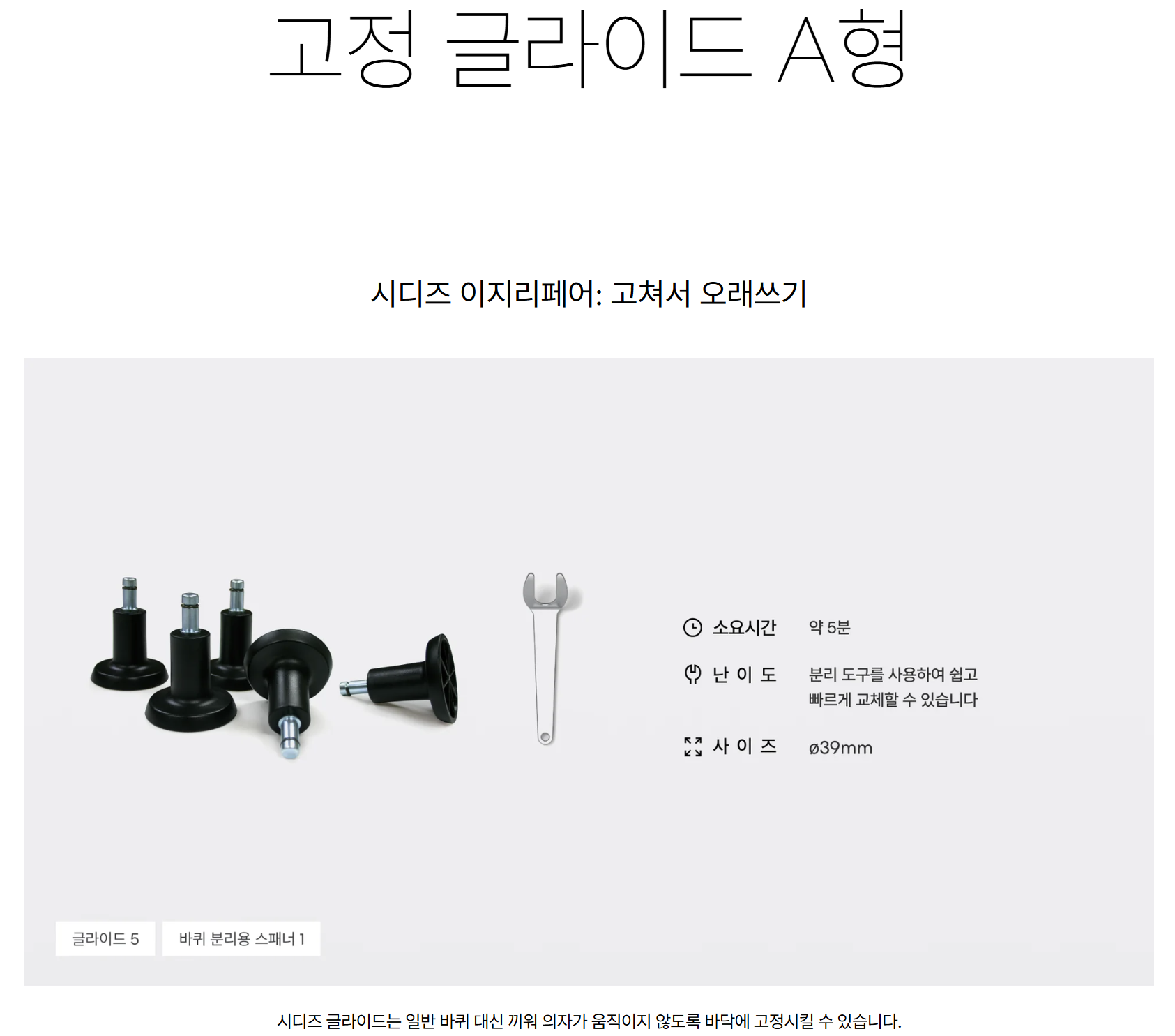 ▶ 요약: 시디즈 정품 글라이드 A형보다 저렴하다. 의자 높이도 2cm 정도 낮아진다.
