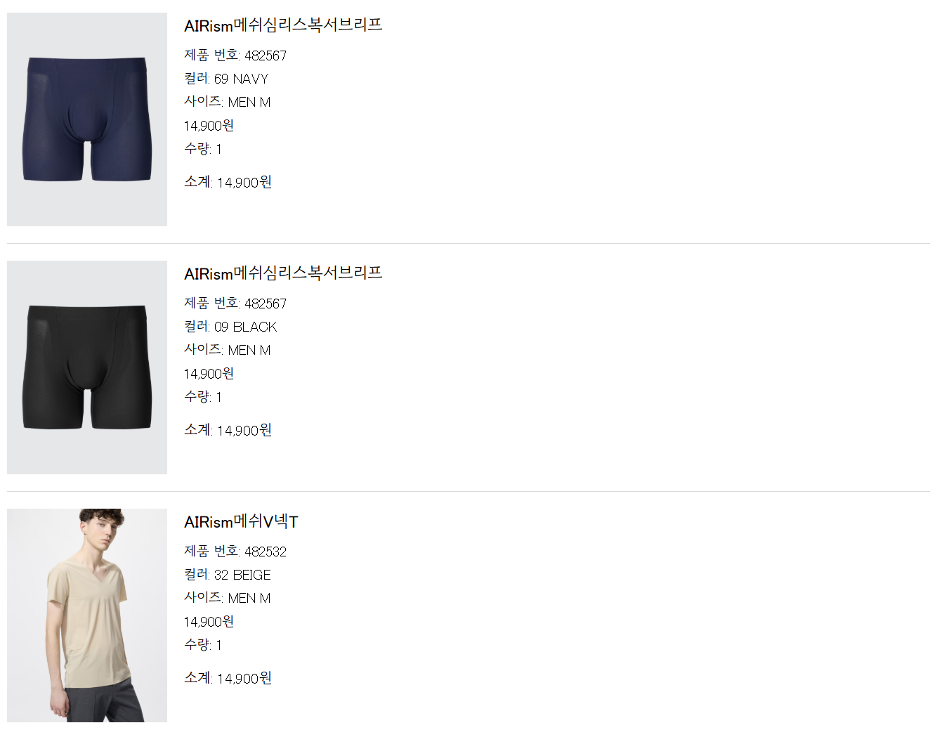 속옷 상의로 유니클로와 스파오 재품을 장기간 사용했는데, 유니클로 에어리즘이 내구성이 더 좋다.