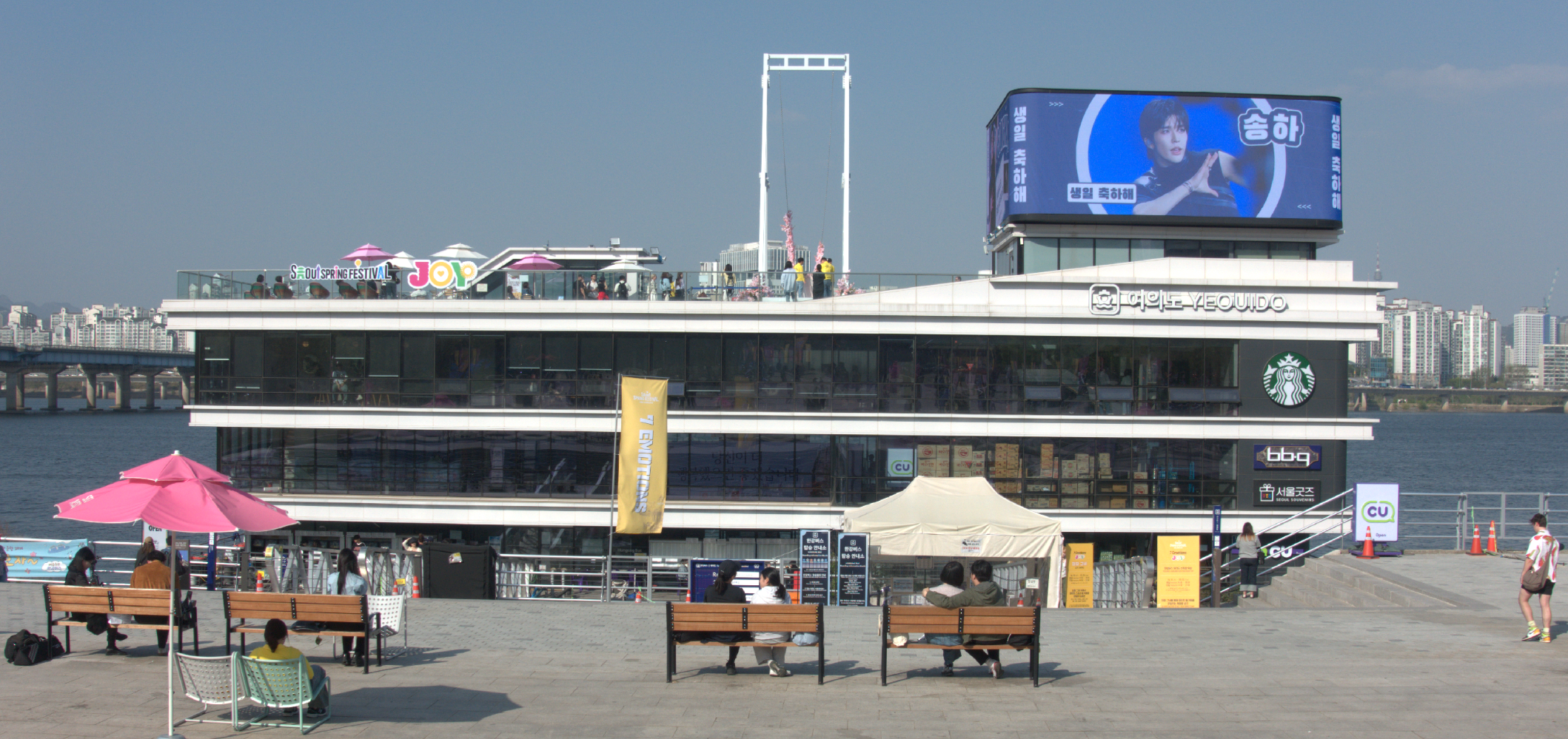 여의도 선착장 근처 모습이다. 의외로 사람이 많다. 연령층이 젊다.
