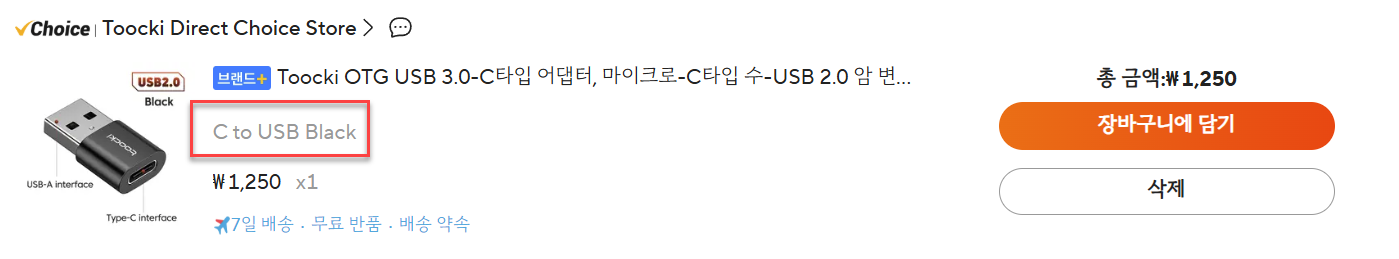 C to USB용으로 구매하면 된다.