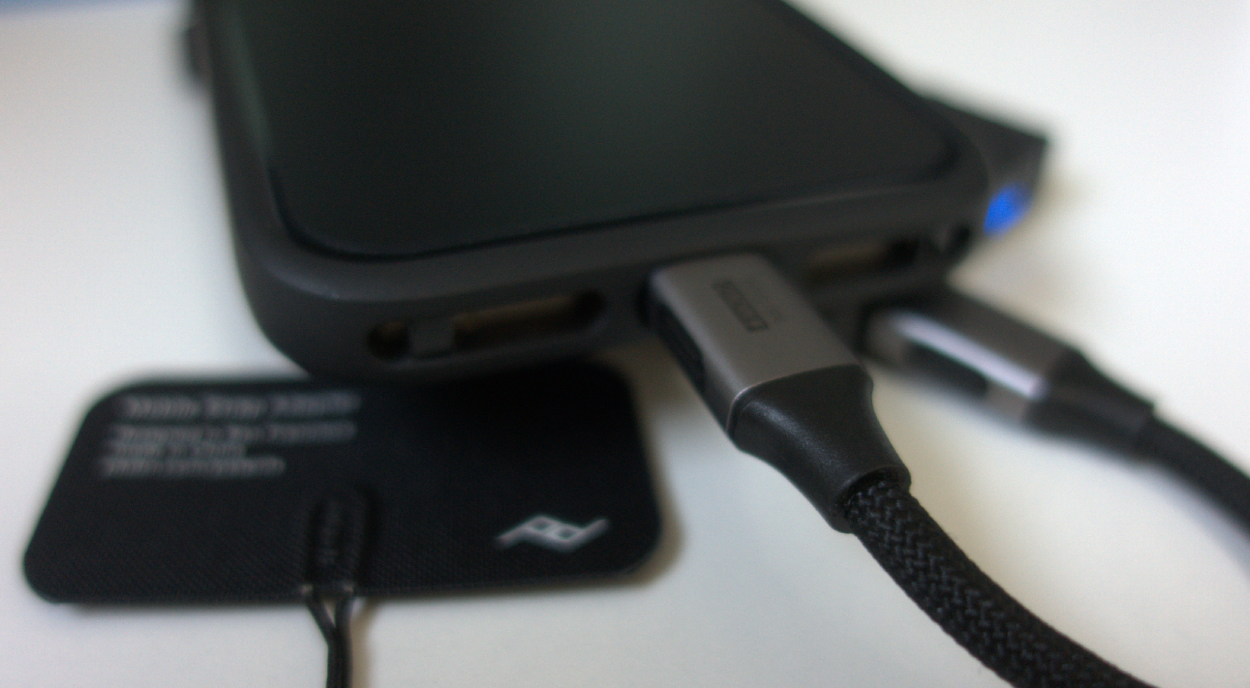 제조사 상품 설명 페이지에 보면 에브리데이 케이스에는 모바일용 젠더가 아닌 그냥 카메라용 젠더로 케이스 자체의 연결 고리에 연결한 모습이다.