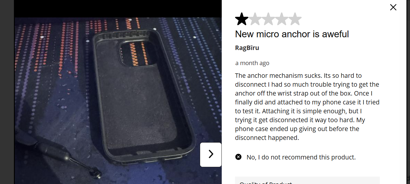 그런데, 케이스 자체의 연결 고리에 사용 시 충격이 가해졌을 때 케이스의 해당 부분이 파손 된 후기를 볼 수 있다.